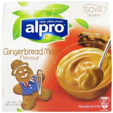 1、阿尔波(Alpro):姜饼人风味大豆甜品(英国)。添加钙和维生素的姜饼小人风味大豆甜品,产品为四个独立碗装。