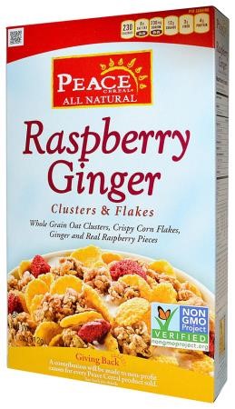 8、Peace Cereal:全天然树莓生姜谷物簇和谷物片(美国)。树莓生姜片和谷物簇,和全麦燕麦簇、玉米脆片、生姜片和真正的树莓片,为你开启自然美味的一天。