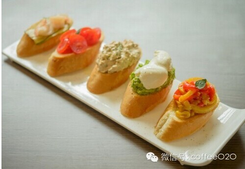菜的部分,有各种选择的电子菜单(iPad点菜)看起来名目众多,其实归类一下,主要是现代西餐和粤菜的混搭,客人可以随意搭配,并且每种食物都可以以多人分享的方式供应。前菜小食种的面包拼盘bruschetta有5种选择,配腌制红黄椒的口感我个人最喜欢,牛油果加水牛奶酪其次,另有爽口的有机西红柿片,以及金枪鱼酱配水瓜柳洋蓟酱,佐白葡萄酒是最佳选择。