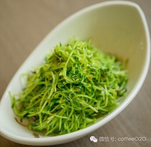 芽苗菜是特色,所以免不了要点“即摘豌豆苗拌橄榄菜”、“空心菜苗北极贝”这样真正绿色的食品,不然就是“清炒即摘豌豆苗”,可以看得出比市场卖的豌豆苗更绿,吃口更嫩,香味也更多,市场常买到的“水分”过多的豆苗菜,除了用水的差别,培育周期也有不同。另一个不能忽略的,则是所选的豌豆品种,餐厅的所有芽苗菜原料品种都是自己独家挑选的。