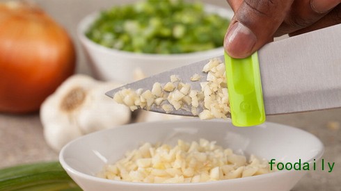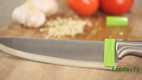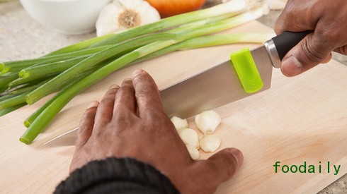 为了增添食物的美味度,我们喜欢将葱姜蒜切成碎末状搁入菜里调味,而这些碎末总会不听话地黏在刀面上,用手将碎末刮到盘子里时,手指常会不小心被刀锋割伤。