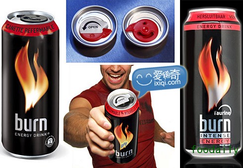 这是可口可乐新近在荷兰上市的一个能量饮料品牌,Burn,看易拉罐包装就给人一种血液燃烧、沸腾的感觉,非常够劲~不过,最够劲的显然并不是这饮料本身——我们不喝Burn还可以喝红牛——而是它使用了一种全新的易拉罐,能多次开启又密封!