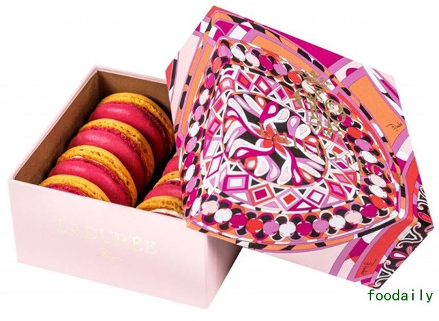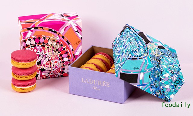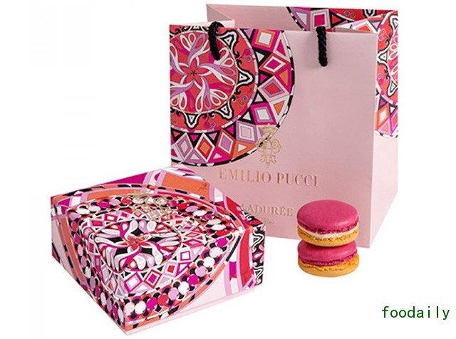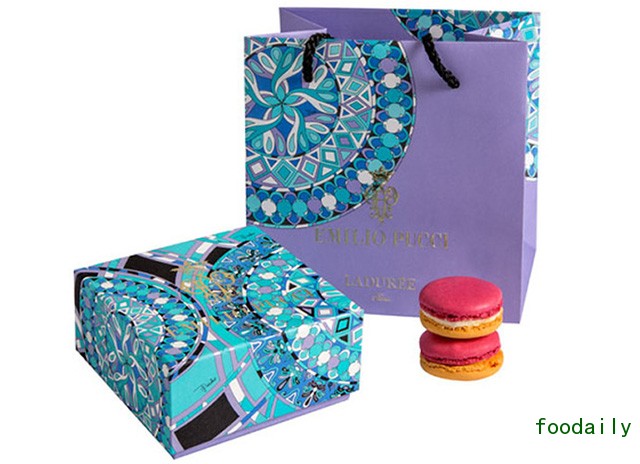 说起马卡龙,你就避不开 LADURÉE 这个名字,因为这家香榭丽舍大街上的百年老店正是双层马卡龙的创作者。如何让“少女的酥胸”流传甚广,除了常换常新的新口味外,与时尚品牌不断保持合作,也是 LADURÉE 的宣传手段之一。NINA RICCI、DONNA KAREN、Christian Louboutin……都是甜点包装设计名单中的一员,印花大师 EMILIO PUCCI 则是下一个对象。