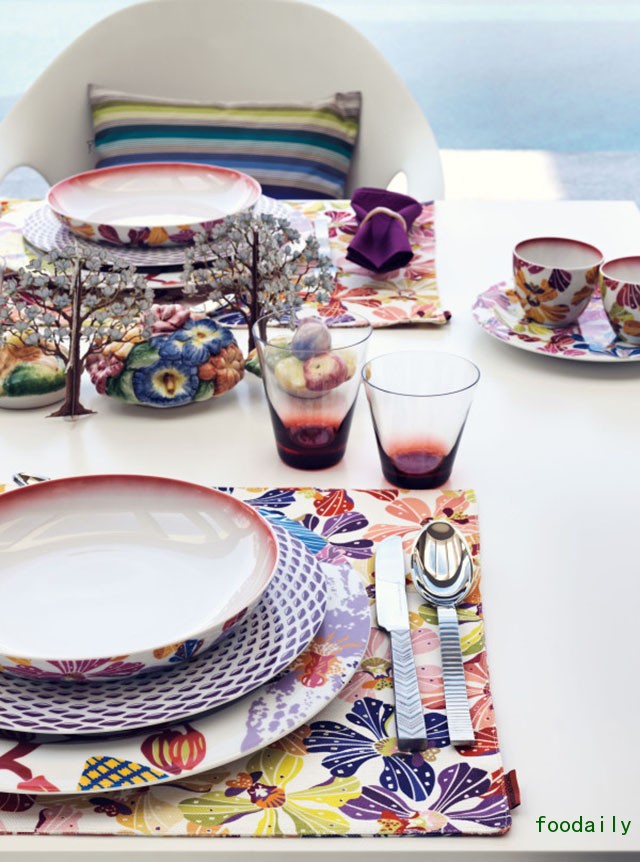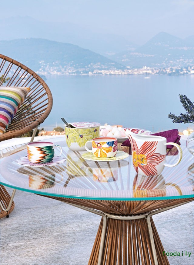 为了呈现出最佳效果,MISSONI 特别找到茶与咖啡用具制造商 Richard Ginori 1735 来制作餐具。后者在 18 世纪就开始制造瓷器,老字号的手工艺自然也让餐具质感得到保证。