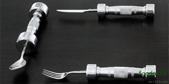 吃饭的刀叉在设计师的眼中可以变出锻炼的趣味,想象下你一定要拿得起这个重