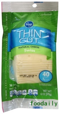 16片纤细切片瑞士天然乳酪。是钙和蛋白质良好来源,每片含40卡路里和3g脂肪。