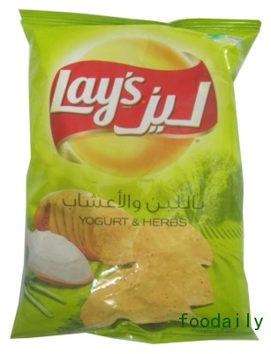 1、 乐事:酸奶草药味薯片(巴基斯坦)。100%源自纯天然土豆。