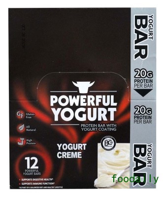 2、Powerful Yogurt:含酸奶涂层的酸奶奶油蛋白棒(美国)。十二个独立包装的带酸奶涂层的酸奶奶油蛋白棒。第一款含20克天然蛋白质和益生菌的酸奶涂层棒。有益消化系统健康。促进免疫功能。不含麸质。纯天然。高蛋白质。运用Ganeden BC30益生菌技术—给消化和免疫系统带来健康。