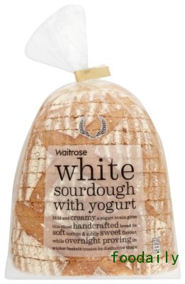 3、Waitrose:加酸奶的白色酸面包(英国)。酸奶制成的白色酸面包。柔和且具有奶油质感的老面(发酵种),赋予了该手工切片面包柔软的质地和淡淡的甜味,而在柳条篮中整夜的发酵造就了其独特的形状。