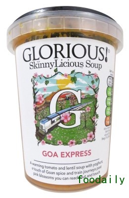7、Glorious:Goa Express Skinnylicious汤(英国)。加酸奶和小扁豆的五香番茄汤。该SkinnyLicious系列的脂肪含量低于2%。