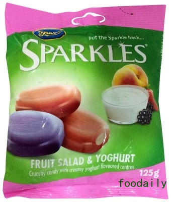 10、Beacon Sparkles水果沙拉和酸奶:奶油酸奶风味的夹心酥糖(巴林)。独立包装,奶油酸奶风味的夹心酥糖。