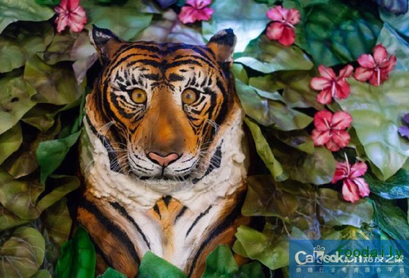 据英国《每日邮报》报道,说起热带丛林,你或许会想到威风凛凛的老虎、种类各异的昆虫、调皮好动的猴子、和颜色各异的花朵。然而,“蛋糕丛林”你或许从未听过,更没有见过。近日,17名糕点师耗时6000小时在英国的曼彻斯特打造出一座“蛋糕丛林”。他们制作的老虎、猴子、花朵等栩栩如生。当然,它们的热量也相当惊人,共含逾3百万卡热量,这意味着你吃下它们,将增重一至两吨左右。