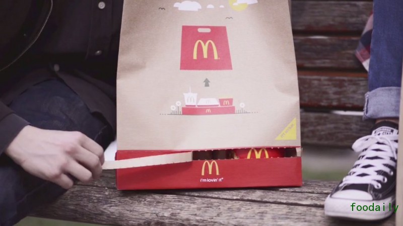 回想以往我们到麦当劳外卖薯条或汉堡,最后只能拎着纸袋“掏”东西吃,而这一来自布达佩斯 DDB 的纸袋创意,则帮助拓展了用餐场所:在车上、公园里、办公室等等这些不容易找到盛放容器的地方,大家也可以围在一起吃吃吃了。