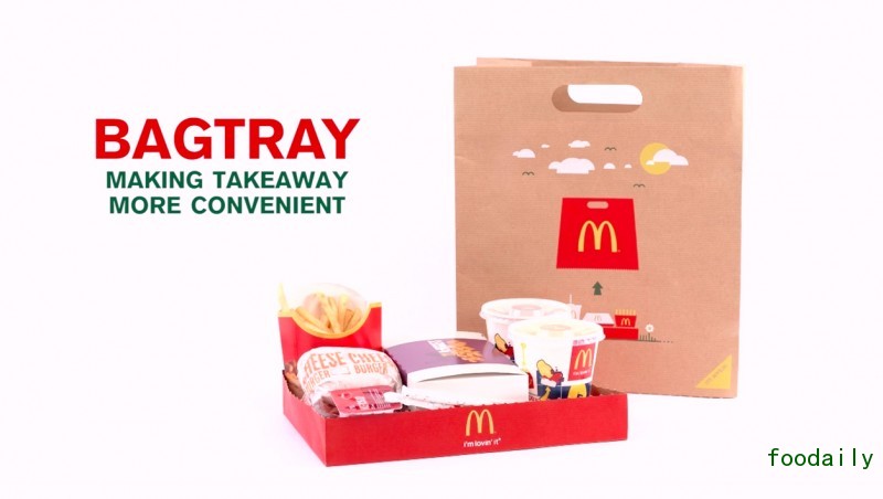 转型中的麦当劳正在各个细节上做出尝试,比方说最近就在布达佩斯推出新的外卖纸袋 BagTray。这款纸袋的底部被做成一个硬纸质餐盘,使得顾客只需撕下连接两者的纸条,就可以坐下来享受美食。