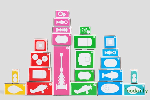 ▲纽约设计工作室 Studio Lin 给 Kid O 打造的玩具包装,本身色彩鲜艳抢眼,玩具取出后盒子还能当做积木来玩。