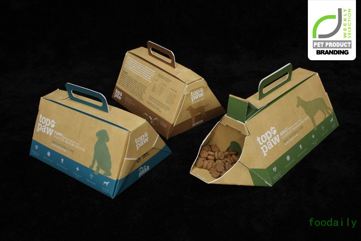 ▲top paw 是一个宠物品牌,它家卖狗粮的妙招便是包装:把一端开口处设计成小餐盘的样子(其实也很像如今不少牛奶盒的包装),让狗粮可以倒出来而又不洒落,狗狗们也可以直接开吃。对于要带着宠物出门的主人来说,top paw 帮忙省去了既带狗粮又带餐盘的麻烦,盒子上的手提把手也方便携带。