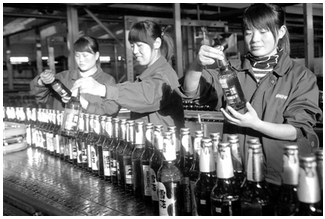 甘肃省兰州市的一家啤酒企业生产车间,工人正在进行产品抽检。本报记者赵 晶摄