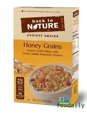 回归自然的谷物系列是由整粒传统发芽谷物制作的,富含纤维和蛋白质,增加了品牌的早餐产品数量。回归自然使用了间歇蒸煮的工艺来锁住更多的味道和营养,利用超级水果如猴面包和蓝莓来增加自然的甜味。新的谷物产品风味包括: