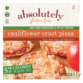 10.Absolutely:无马苏里拉奶酪顶料的花椰菜饼皮披萨(美国)。Absolutely无马苏里拉奶酪顶料的花椰菜饼皮披萨,所有口味均不含谷蛋白,每份披萨只含57千卡热量和1.7g脂肪。