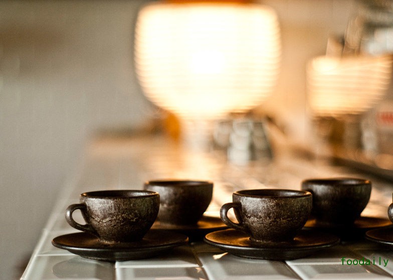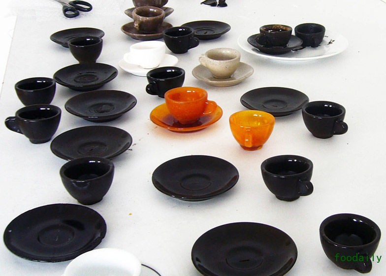 设计师为每个咖啡杯的侧边都设计了一个小把手,并配有相应的咖啡碟,将小碟子中间设置为凹陷的形状,防止咖啡杯来回滑动。