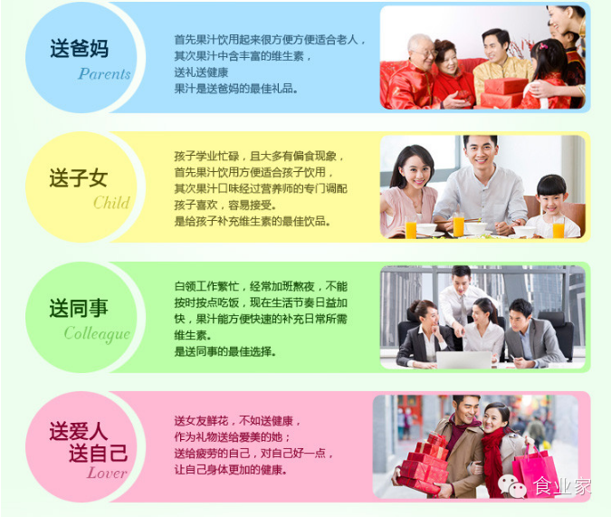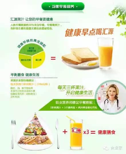 汇源已完成果汁全产业链布局,从果园到家园的绿色产业链,并且凭借强大的研发能力及多年的市场积淀,汇源新品早啊100%复合果蔬汁将目标人群定位于早餐人群,产品不添加防腐剂,口味好,唤醒沉睡一晚的食欲。