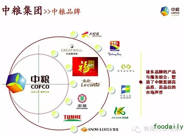 而仔细甄别这些公司的业绩范畴情况可知,也有一些公司的业务出现重合之处,比如,中国粮油从事的业务包括粮油加工,而中国食品的主要业务包括饮料、酒类、厨房食品和休闲食品。长城葡萄酒、福临门食用油、金帝巧克力等皆在其名下。