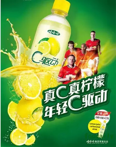 三、体育营销无孔不入。低调一直是娃哈哈的一大特征,尽管头顶“中国首富”头衔,娃哈哈董事长兼总经理宗庆后至今不参加包括高尔夫在内的任何体育休闲活动,但这并不代表娃哈哈拒斥体育营销。C驱动一经推出,便邀请曼联传奇巨星德怀特·约克和丹尼斯·埃尔文亲临现场助威,旗帜鲜明地打出了“真C真柠檬,年轻C驱动”的主张来强化品牌概念。