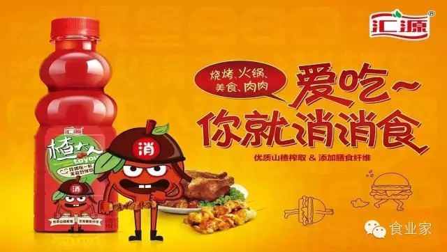 第一眼看到楂大人,火红的外表就给食业君留下了很深的印象。想必王老吉加多宝红罐之争的原因之一,也是因为红色容易被消费者只记。对于8090甚至00后的消费者,任何一款产品在好喝好营养之前,一定要满足好看。而这类人最爱的正是新奇、个性、卖萌、逗比……略显夸张的山楂卡通人物,头戴“消”帽,如同救火队员,来给你的肠胃“消消食”,足以Hold住年轻消费者。