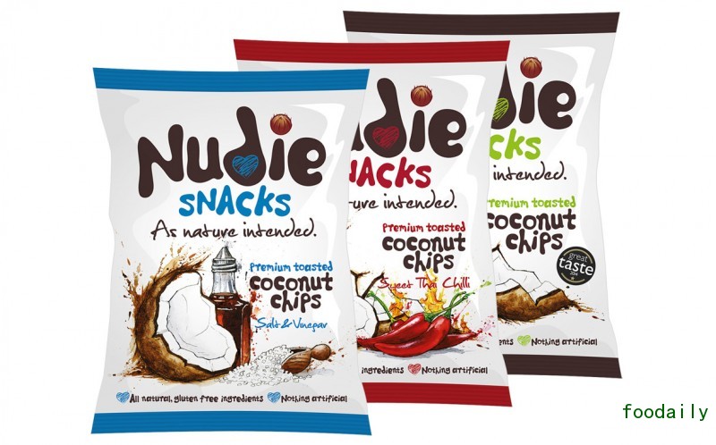 Nudie Snacks的盐醋味、泰式甜辣味和咸甜味的零食标榜为“一种健康的、全天然的替代传统薯片的选择,碳水化合物不到传统薯片的三分之一,而纤维含量则是三倍”。该产品35克袋装的建议零售价为1.29英镑,该公司还计划推出四连包混合装。