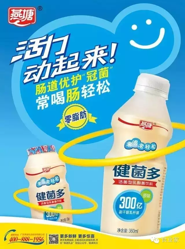 除以上两款新品之外,燕塘乳业对健菌多乳酸菌饮料还做了全新的包装升级,72小时长效发酵,含300亿活性乳酸菌,且脂肪含量为零。