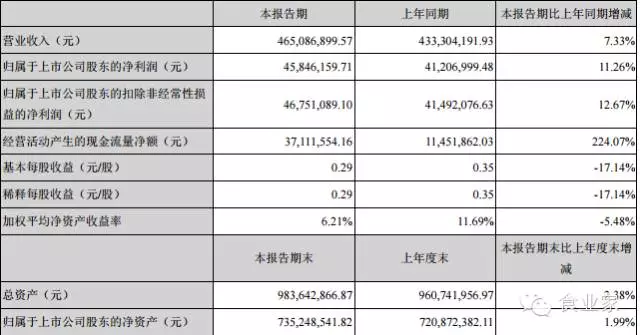 燕塘乳业7月30日发布的《2015年半年年度报告》显示,上半年营业收入4.65亿,比同期增长7.33%。