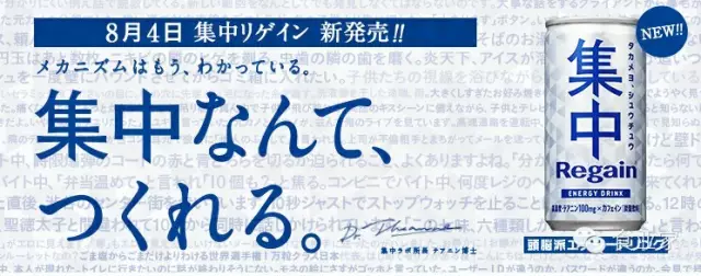 日本三得利这款“集中”饮料,其成分包含了能够提高记忆力、放松精神的“茶氨酸”,让你保持清醒的咖啡因以及生长激素的组成元素“精氨酸”,因此产品能够让你放松下来并集中精神,进而提升你的注意力。为了让你更直截了当的了解产品功效,因此日本三得利将此款产品命名为“集中”。