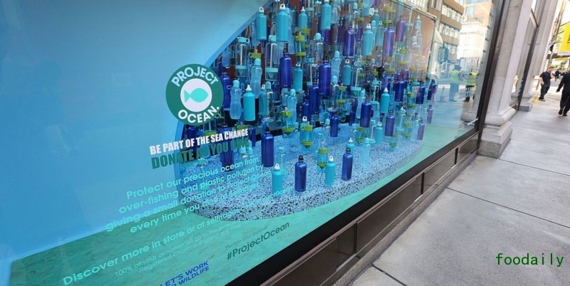 英国百货公司 Sefridges 联合伦敦动物学会(ZSL)推行的环保行动计划“海洋计划(Project Ocean)”已经进入到第五年。过去几年,Selfridges 在自己店铺、橱窗、网店上开设专区,用颇富创造力的方式做关于濒危鱼类、海洋环境保护、可持续性渔业等主题的小型展览和陈列,以吸引消费者关注海洋问题。