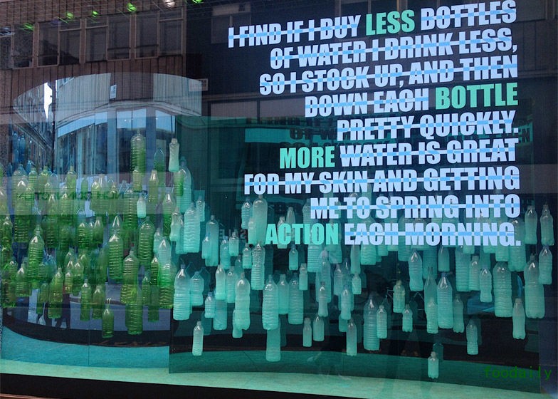 如果只宣传概念而没有更具针对性的实际行动,这次展览可能只会被视为某个华而不实的喊口号式运动。不过 Selfridges 已经决定,从今往后停止在自己的商店里提供一次性塑料水瓶,转而推广玻璃瓶和可循环使用的盛水容器。为鼓励人们自己携带水壶,Selfridges 还在这家伦敦店铺里设了一个专门的饮水处,让来往的顾客自行取水饮用。
