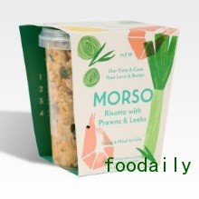 Morso食品是一项全新的业务,推出了即食的(ready-to-finish)、餐厅品质的意式调味饭,只需要七分钟。这个系列不含麸质,提供了三种可口风味。它们分别是蘑菇意式调味饭(内含褐蘑菇、大蒜、迷迭香和红酒)、培根茴香意式调味饭(新鲜茴香、茴香籽和迷迭香)、大虾韭菜意式调味饭(虎虾、少许红辣椒和龙嵩叶)。每千克售价10英镑。