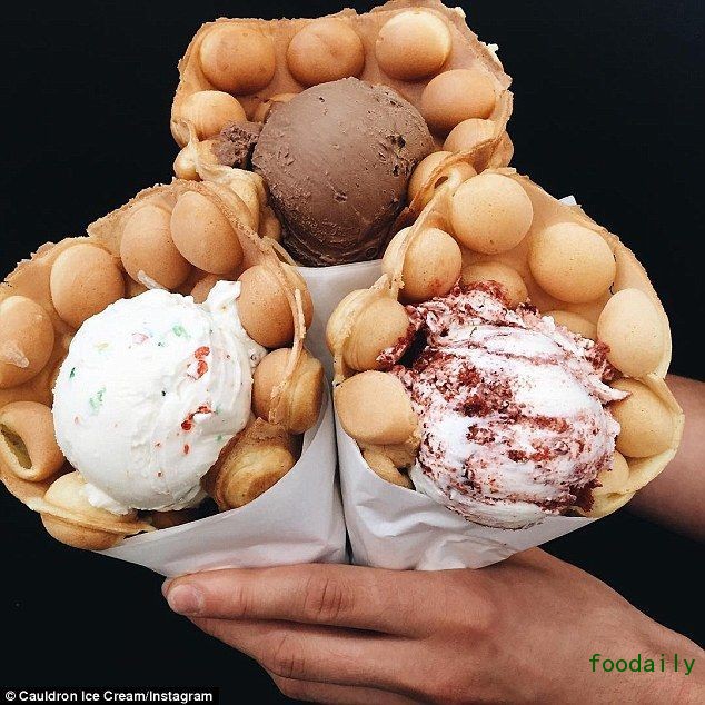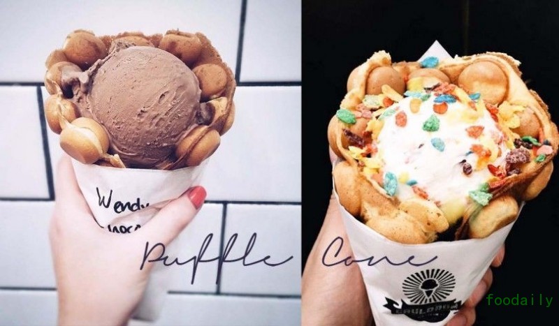 温热的鸡蛋仔加上冰冻欲化的冰激凌,听起来就比一般的甜筒冰激凌诱人。来看看这些鸡蛋仔夹冰激凌到底长什么样。