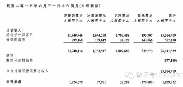 首先,我们看看蒙牛乳业几个分部的上半年业绩: