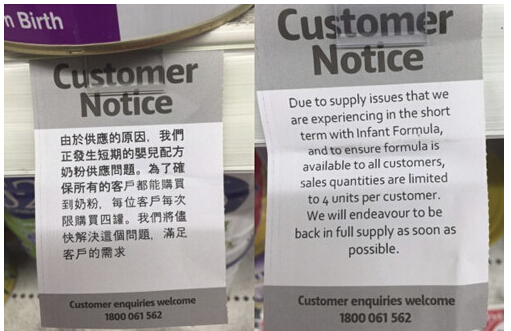 核心提示:随着中文限制买家购买数量的标签遍布澳大利亚Coles和Woolworths等超市,供货紧缺再次被提上了日程。