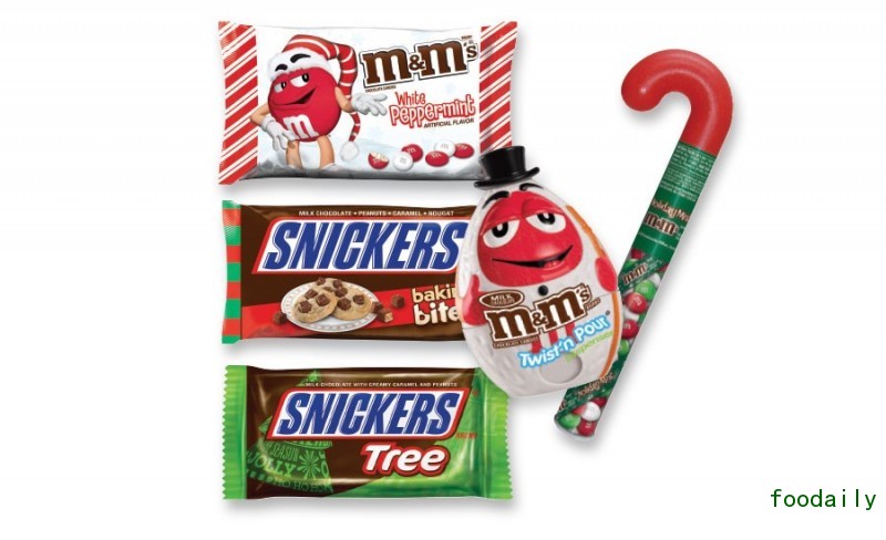 1、M&M薄荷巧克力糖和士力架迷你圣诞节日拐棍