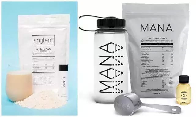 图中右侧的产品是Soylent在欧洲的仿制者MANA,这家公司到现在仍然保留了额外的小油壶。在Soylent获得成功之后,美国、欧洲和中国都有同类创业企业迅速跟进,发布与之相类似的产品。作为领导者的Soylent则在全新2.0版本中彻底改头换面,成为可以直接喝的瓶装饮料。