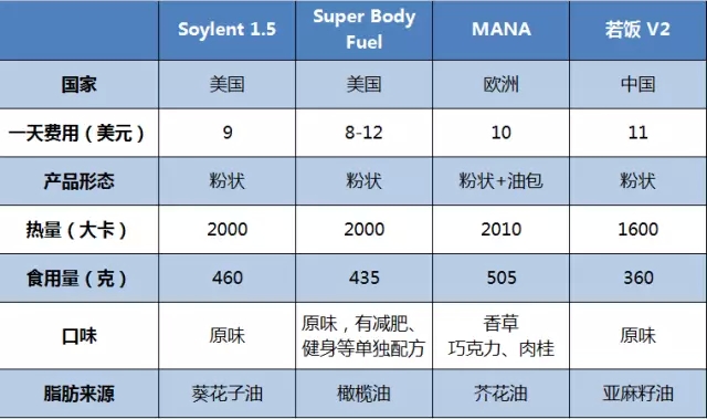 Soylent作为一家估值1亿美元的公司,自然在全球范围内出现众多的追随者,我分别选择他在美国、欧洲和中国的一个同类产品进行对比: