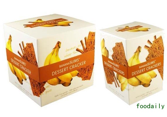 加拿大Trumps Food Interest有限公司,提供了一种“更加为你”的东西旋涂在甜点上。这种细长型甜品饼干有三种:香蕉味,可可味,和蔓越莓橙味。这种无麸质、全天然的甜点饼干分装在100卡路里的小包中,每包三个,食用起来很方便。