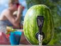 如何让西瓜变成西瓜桶?来,跟着我做。一、把西瓜上方切开,挖出果肉,打成汁,再将汁倒入西瓜中。可以视个人喜好加些冰块。二、利用Watermelon Keg Kit将西瓜打个洞,再将其转进西瓜里。如图所示,这工具其实就是个