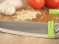为了增添食物的美味度,我们喜欢将葱姜蒜切成碎末状搁入菜里调味,而这些碎末总会不听话地黏在刀面上,用手将碎末刮到盘子里时,手指常会不小心被刀锋割伤。为了解决这一问题,美国设计师Calea Kevlin发明了清洁刀面