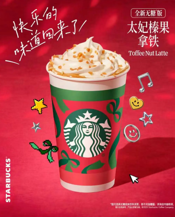 11月5日,星巴克上新「无糖版太妃榛果拿铁」。据官方介绍,新品选用特制风味浓浆(不含糖浆),顶部奶油撒上真实太妃糖榛子碎,搭配上经典浓缩咖啡,口感细腻醇香。顾客在点单「太妃榛果拿铁」时,可自由选择甜度:标准甜、少甜、少少甜、不另外加糖,或调整为0热量代糖等,满足不同的甜度需求。