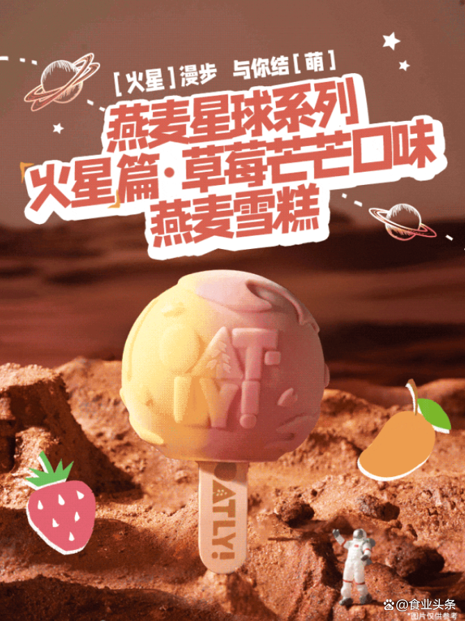 近日,OATLY燕麦星球系列上新火星篇·草莓芒芒口味燕麦雪糕,据介绍,新品选用0ATLY燕麦奶制作,酸甜草莓风味与清新芒果风味交织,融入醇醇麦香谷物,0乳糖、0反式脂肪。产品外观采用创新3D技术&双味混色工艺,生动还原炫彩火星。(食业头条)原文链接
