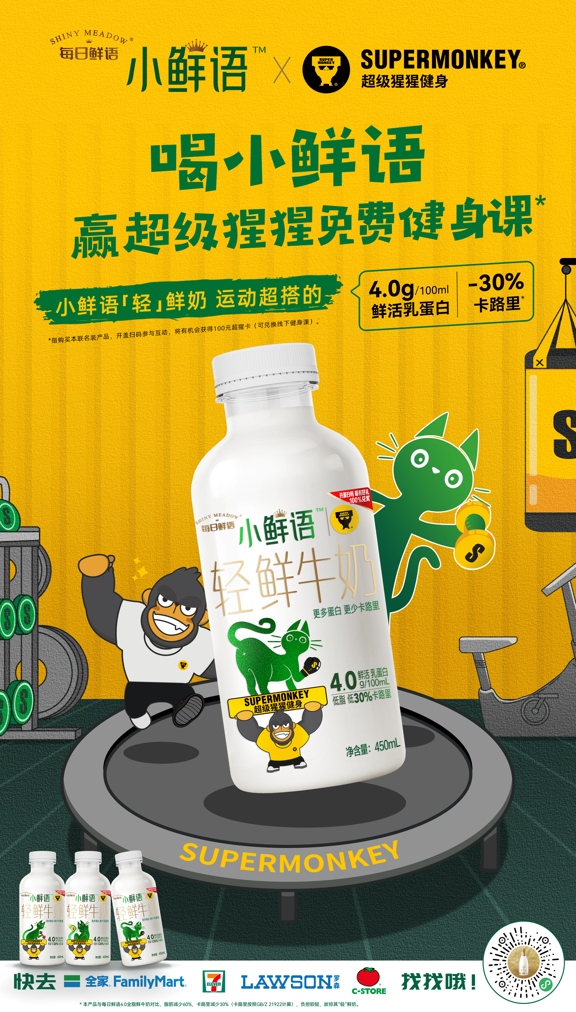 8月18日,每日鲜语推出超级猩猩联动款轻鲜牛奶。每100mL含4.0g鲜活乳蛋白,脂肪含量减少60%脂肪,卡路里减少30%。现已上市。原文链接