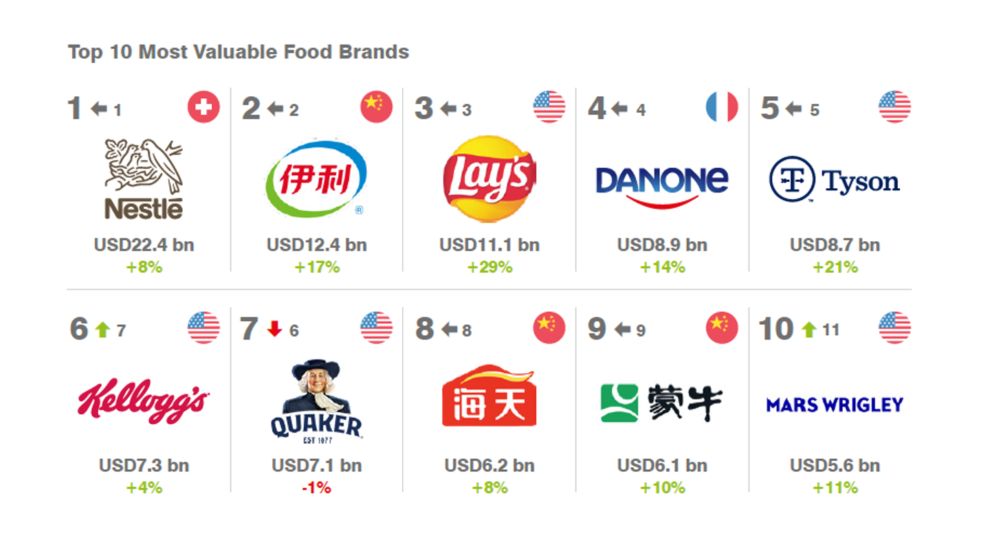 近日,雀巢公司继续巩固其作为全球最有价值食品品牌的地位,在 Brand Finance 最近发布的《2023 年食品与饮料》报告中稳居榜首。 雀巢的品牌价值去年增长了 8%,从 208 亿美元增至 224 亿美元。Brand Finance 将增长的部分原因归因于雀巢品牌组合的强劲销售增长以及前景光明的植物性产品创新,例如Toll House 的全麦饼干面团和新的非乳制品。 Brand Finance 表示:“雀巢满足不断变化的消费者偏好、保持领先趋势并有效推出新产品的能力一直是其品牌价值持续增长的驱动力。”原文链接