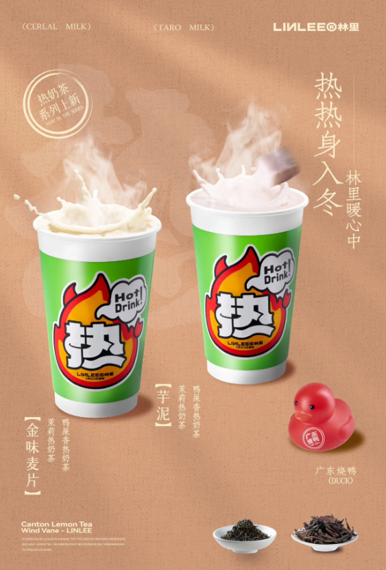 Linlee上新四款热奶茶,活动附送“广东烧鸭”