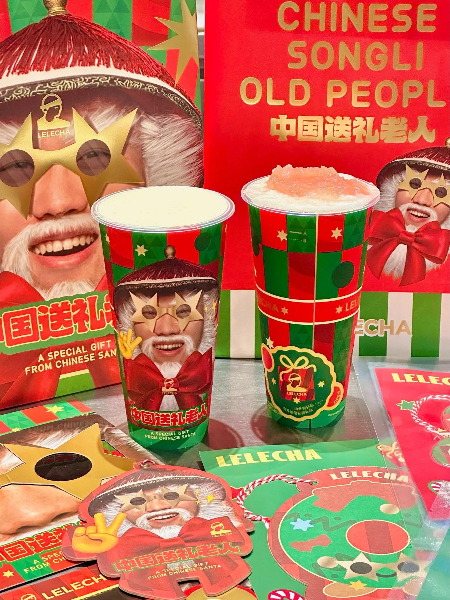 乐乐茶双旦推出「中国送礼老人」系列饮品